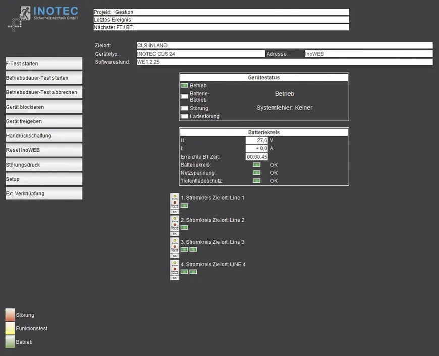 Systémy nouzového osvětlení jsou monitorovány přístupem na INOWEB běžící na řídicí jednotce (prostřednictvím webového prohlížeče). Stav každého systému, okruhu a svítidla lze zkontrolovat prostřednictvím webové stránky chráněné heslem (volitelně).